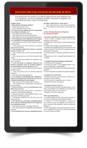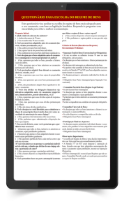 Este questionário auxilia casais a escolher o regime de bens mais adequado para o casamento, considerando idade, bens prévios, dívidas, autonomia na administração e desejo de partilha. Com base nas respostas, aponta a recomendação preliminar entre comunhão parcial, comunhão universal, separação total ou participação final nos aquestos. Ressalta ainda a importância do pacto antenupcial e da orientação jurídica na decisão.